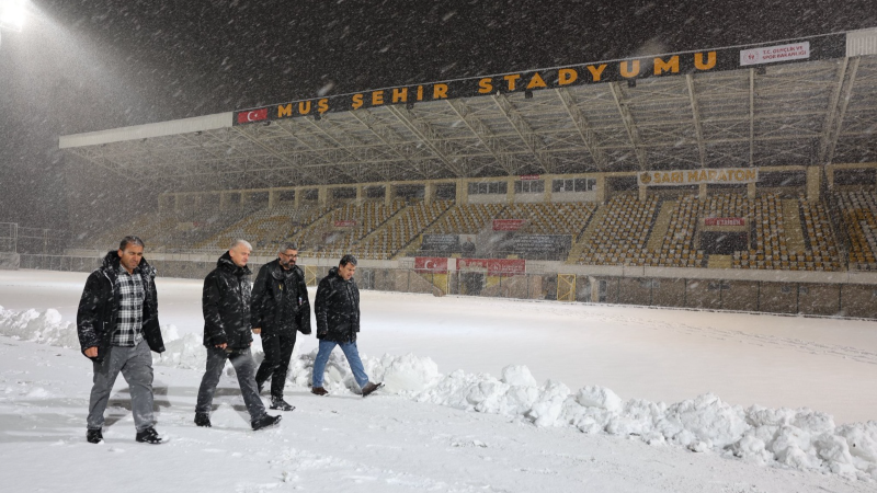 TFF 2.Lig Kırmızı Grup'ta Muşspor ile Bursaspor arasında bugün saat 13:30'da Muş Şehir Stadı'nda oynanacak maç öncesi Muş'ta dün başlayan yoğun kar yağışı zemini karla kapladı.