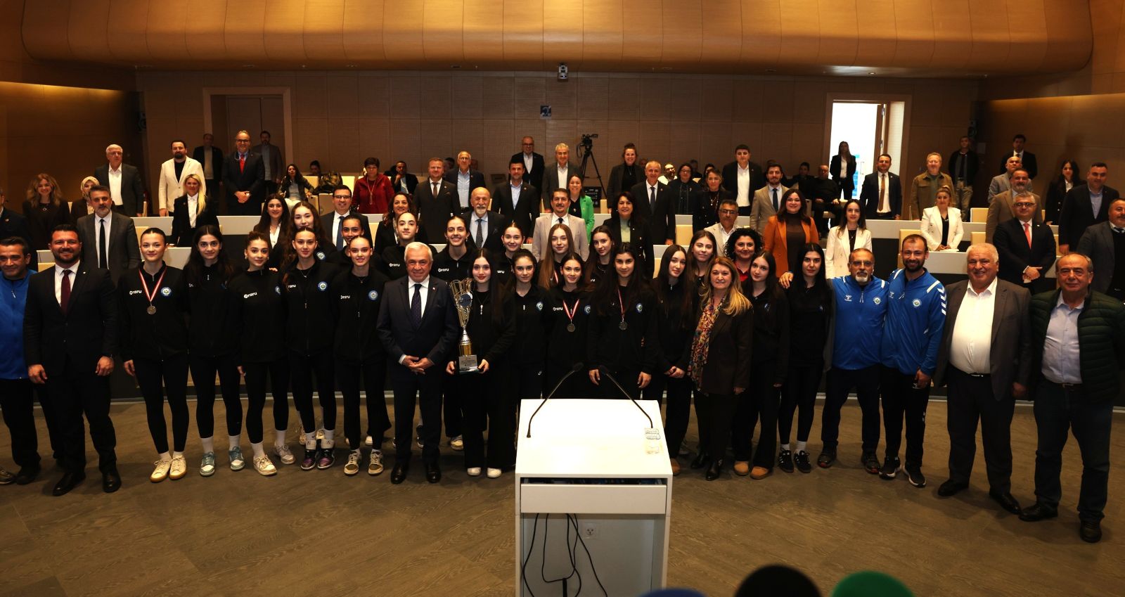 Genç sporcular, daha sonra kazandıkları kupayı Başkan Şadi Özdemir’e takdim ettiler. Başkan Şadi Özdemir de kupayı tüm meclis adına teslim aldı.