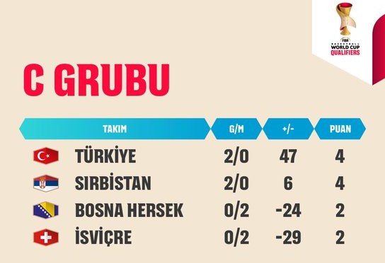 Grupta 2 yenilgisiz takımdan Türkiye averajla lider durumda...