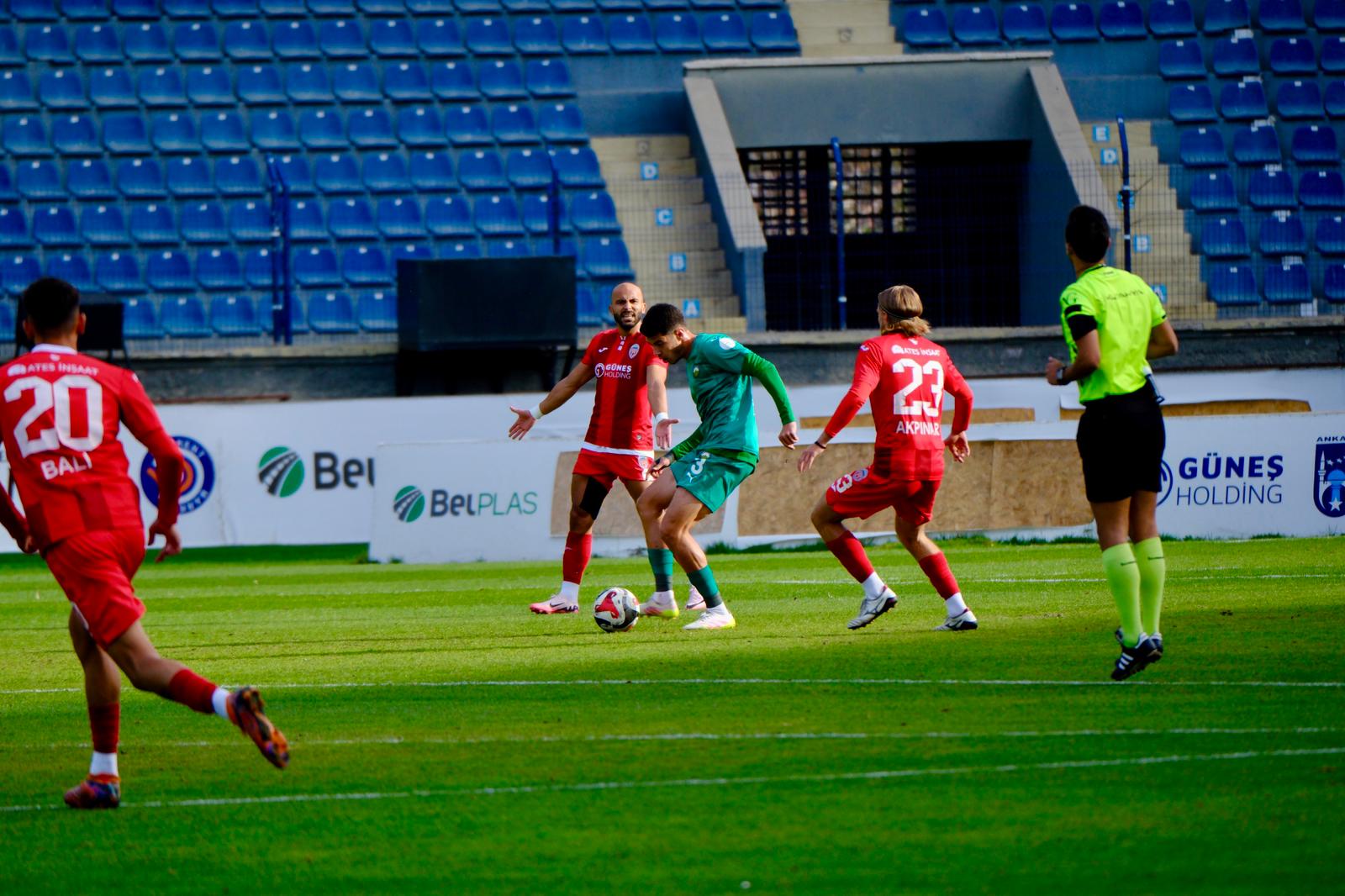 Osmanlı Stadı’nda oynanan mücadelede, Çankaya 11. dakikada Selim Ilgaz 1-0 öne geçerken, Bursa ekibi 47. dakikada Koray Ege Sağım il skoru 1-1 yaptı.