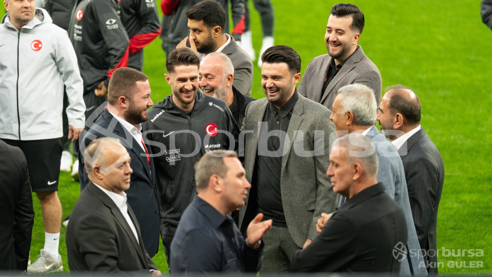 Ay yıldızlı kafileyi stadyum soyunma odası koridorlarında karşılayan Başkan Çelik ve yönetim kurulu, A Milli Takım Teknik Direktör Vincenzo Montella'ya çiçek verdi ve milli oyuncularla tek tek tokalaştı.