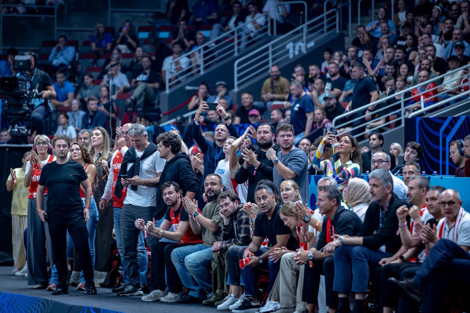 Takımı’nın Sırbistan’ı 95-90 yendiği nefes kesen karşılaşmayı salondan takip etti.