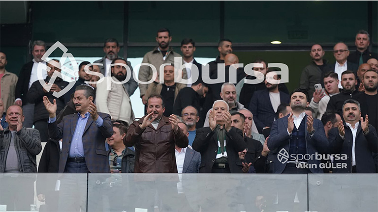 Protokol tribünü de maçı izleyen 37 binin üzerindeki taraftar gibi uzamtalarda kazanılan üç puanının hazzını yaşadı, Bursasporlu futbolcuların ve tribünlerin galibiyet sevincine ve kutlamalarına ortak oldu.