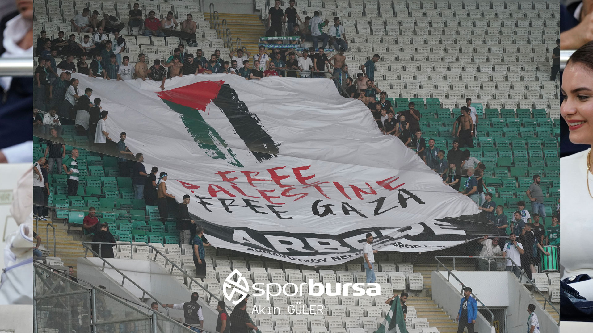 Maç öncesi Arnavutköy Belediyespor tribünlerinde Filistin'e destek pankartı açıldı.