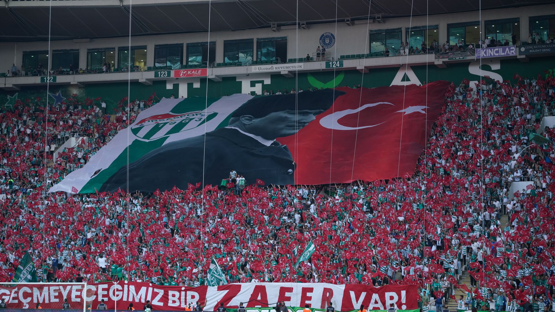 Tribünlerin dolu olmasının yanında Bursaspor taraftarı coşkusu ve maç boyunca takımına verdiği destekle de Türkiye'nin gözdesi konumunda...