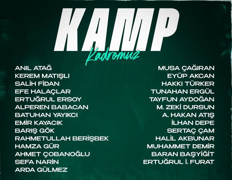 Sezonu kapattığı açıklanan Tayfun Aydoğan da kamp kadrosunda yer aldı. Bir gün izin alan Eyüp Akcan’ın ise yarın kampa dahil olacağı bildirildi.