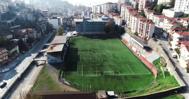 Karadeniz Ereğli'deki stadın zemini sun çim...