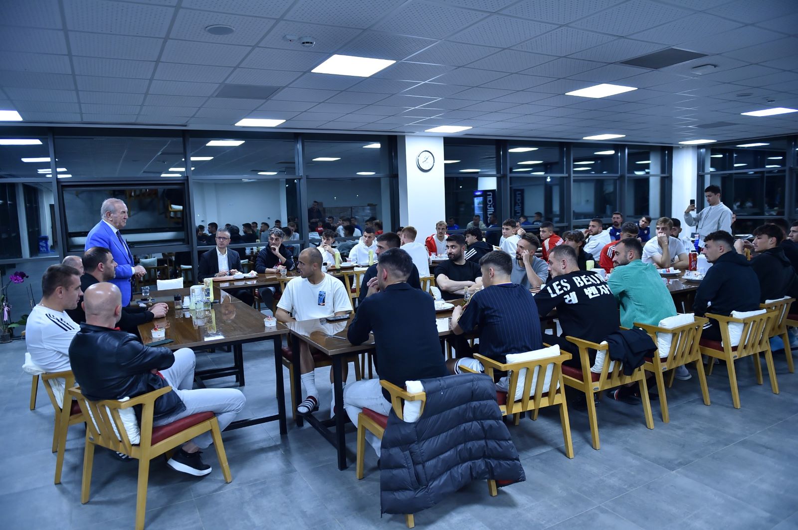 bir ortamda gerçekleşen ziyaret, hem futbolcular, hem de teknik ekip