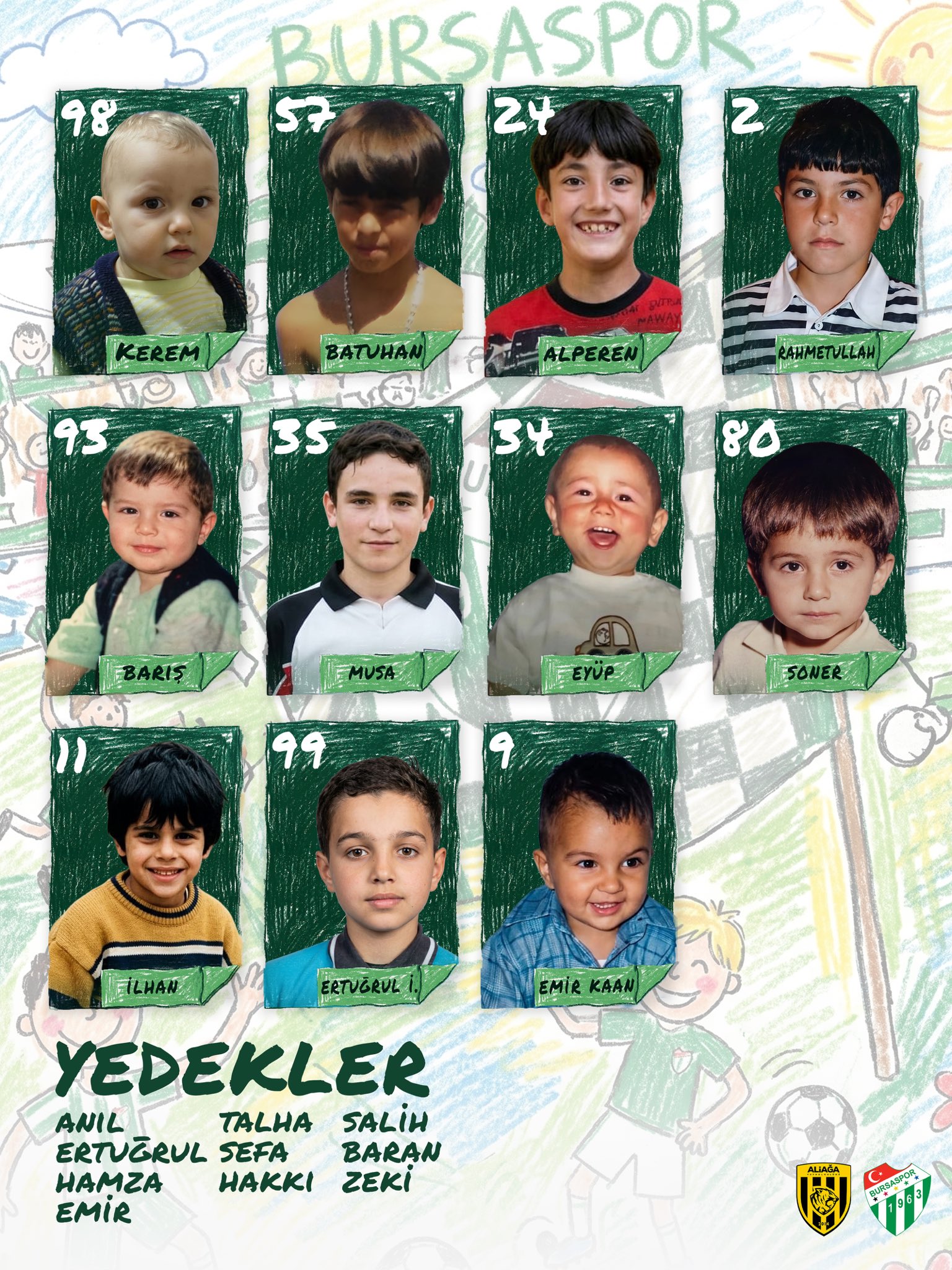 Bursaspor Kulübü, kadroyu, 23 Nisan Çocuk Bayramı’ndan hareketle, futbolcuların çocukluk fotoğraflarıyla verdi.