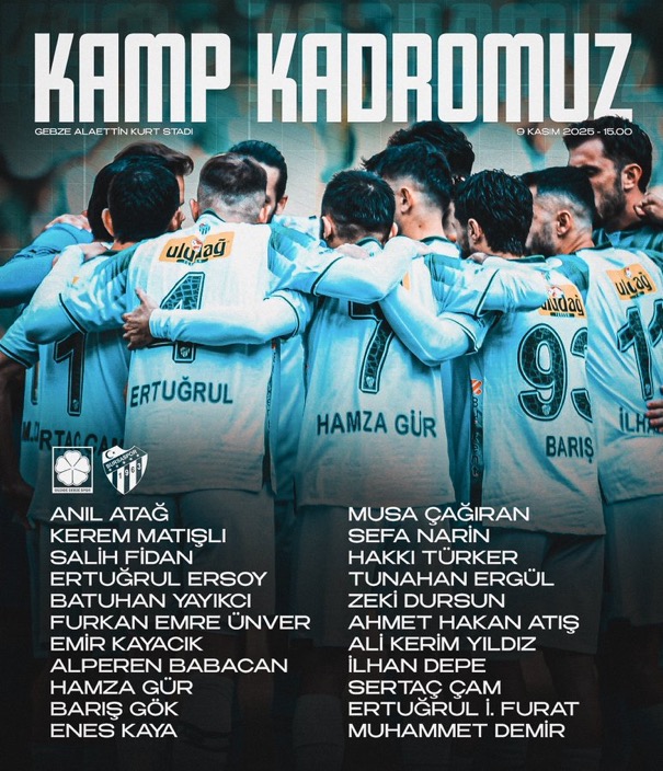 Bursaspor’un pazar günü deplasmanda Gebzespor ile oynayacağı maçın deplasman kadrosu oldu.