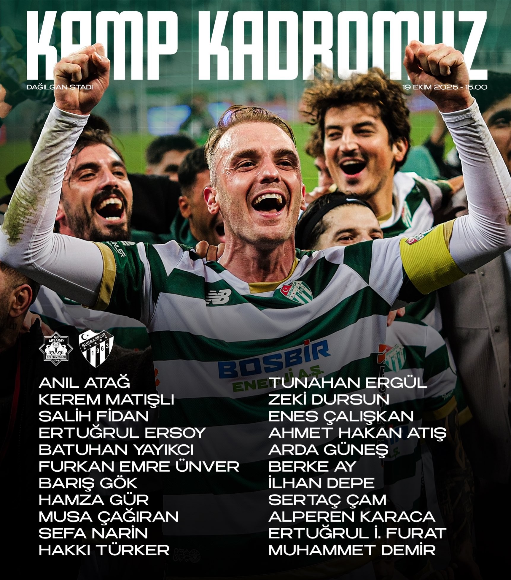 Bursaspor, pazar günkü Aksaray maçının kadrosunu açıkladı.