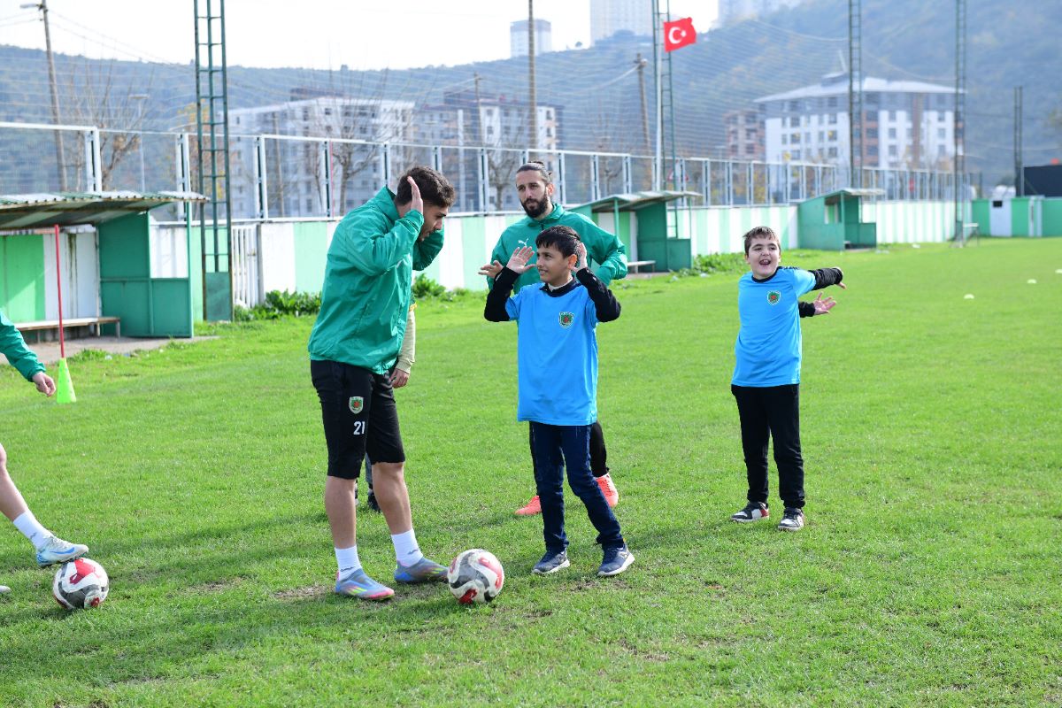 Futbolcular işaret diliyle miniklerle anlaştılar.