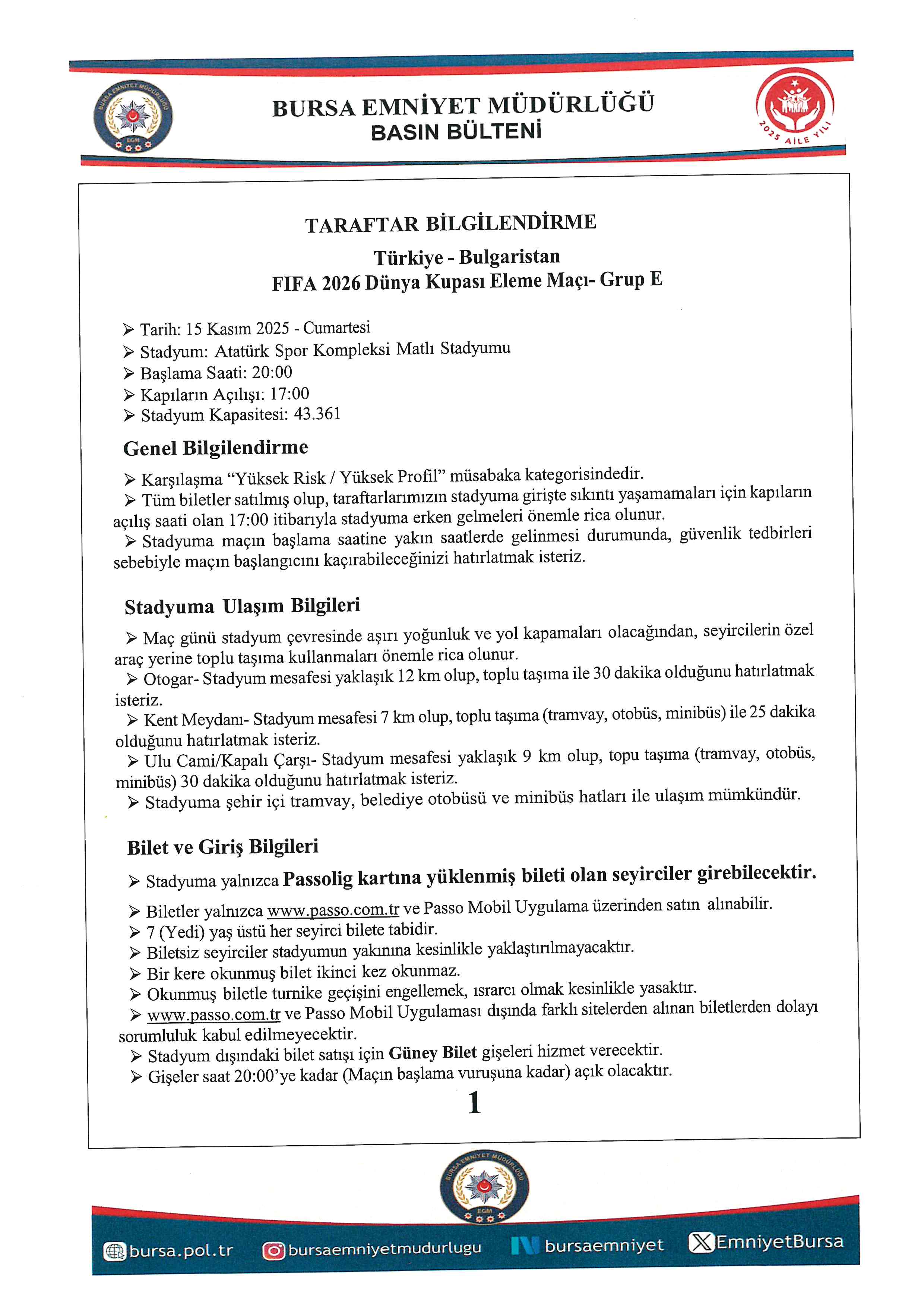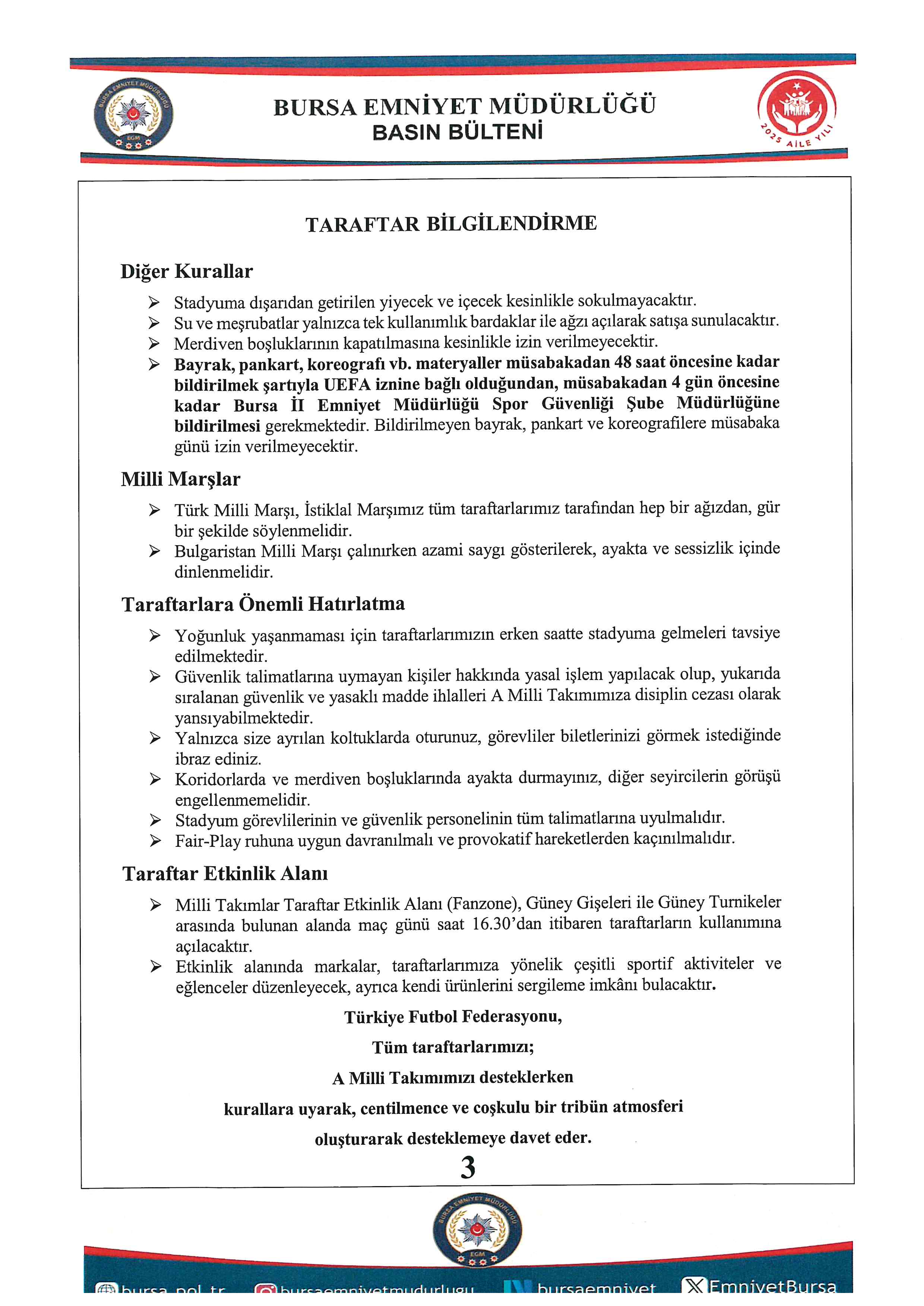 Cumartesi günü Bursa'da Bulgaristan ile karşıya gelecek. Bu bilgilendirme, maçı
