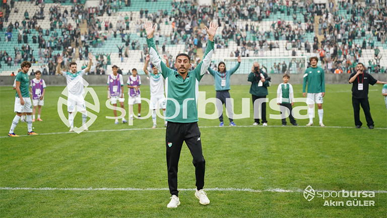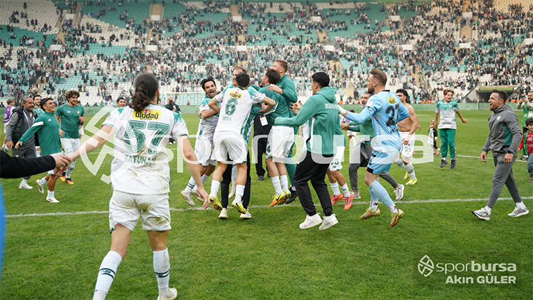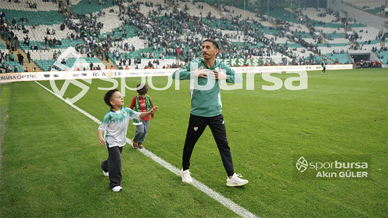 Maçtan sonra Bursasporlu futbolcular orta saha yuvarlağında toplanıp