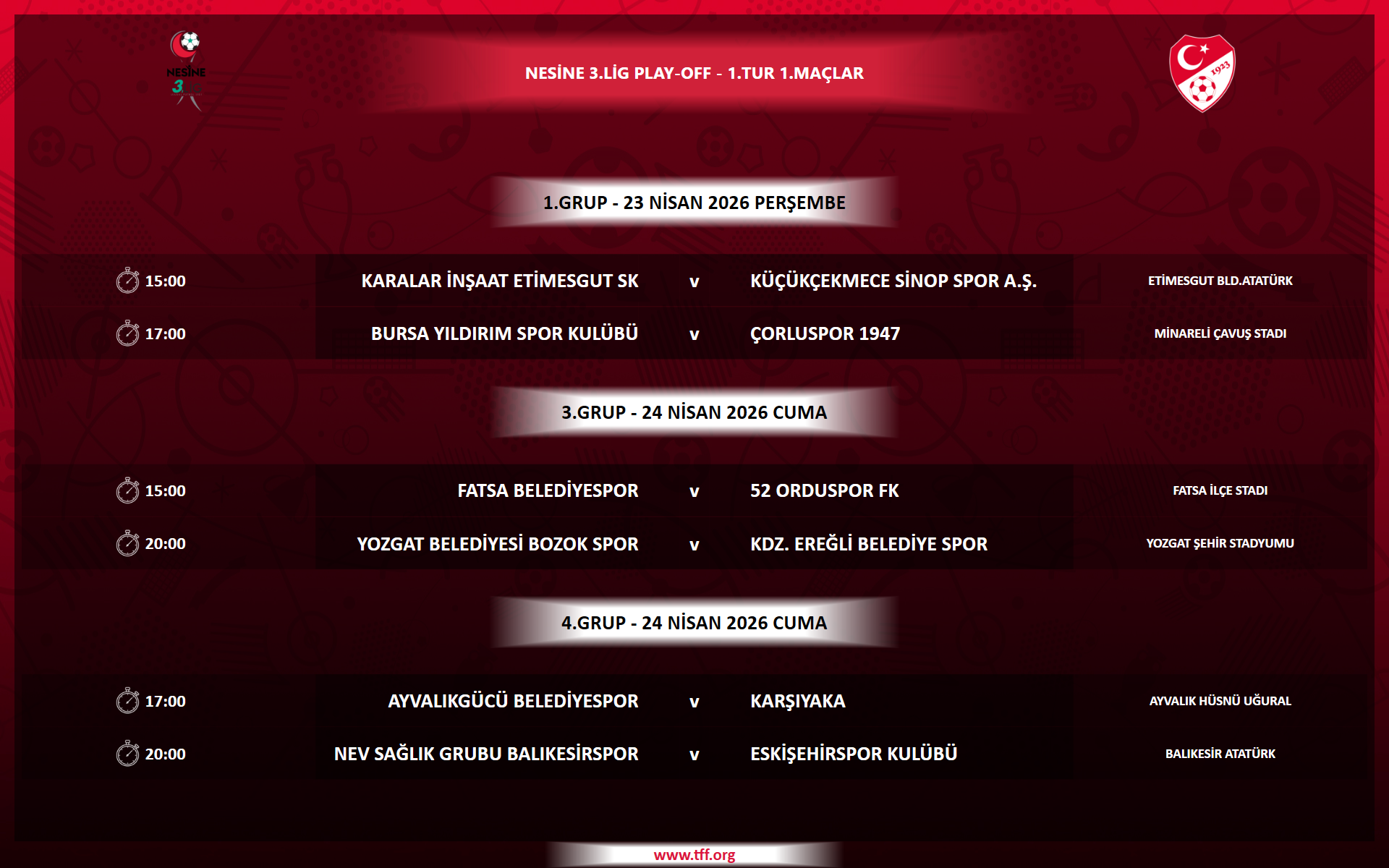 İki maç sonunda turu geçen takım, Küçükçekmece Sinopspor- Etimesgutspor (3-4) eşleşmesinin galibiyle, tarafsız sahada tek maç oynayacak. Grup finalini kazanan ekip, TFF 2. Lig’e çıkan takım belli olacak.