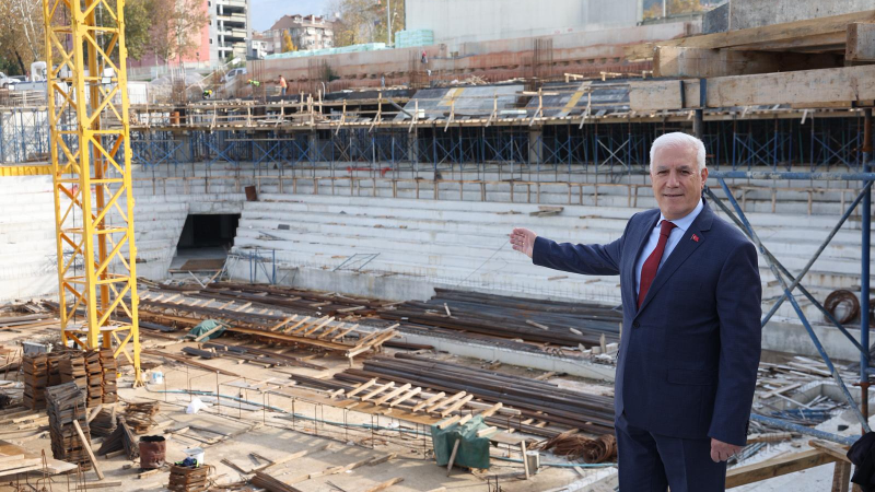 Bursa Büyükşehir Belediye Başkanı Mustafa Bozbey ve yetkililer, salon inşaatında denetlemelerde bulundu.
