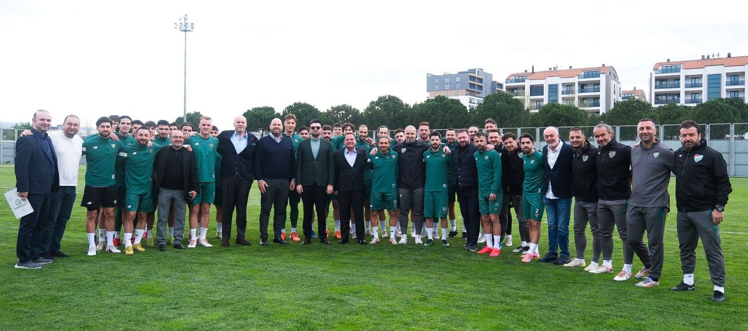 Daha sonra Levent Kızıl, Ömer Kızıl ve Mete Öz, Bursaspor’un antrenmanını ziyaret ederek, teknik heyet ve futbolculara şampiyonluk yolunda başarılar diledi.
