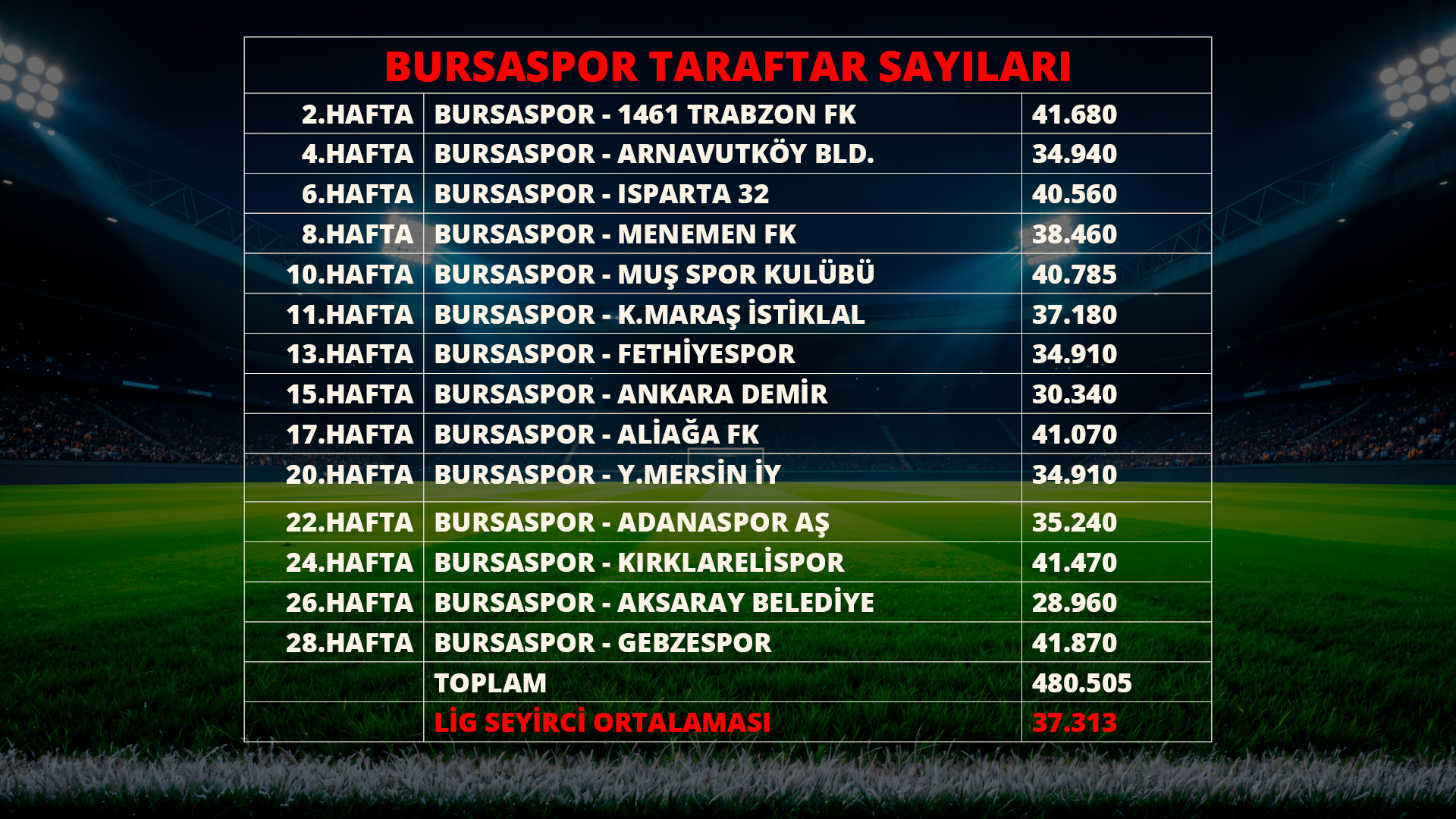 İŞTE BURSASPOR'UN MAÇ MAÇ TARAFTAR SAYILARI: