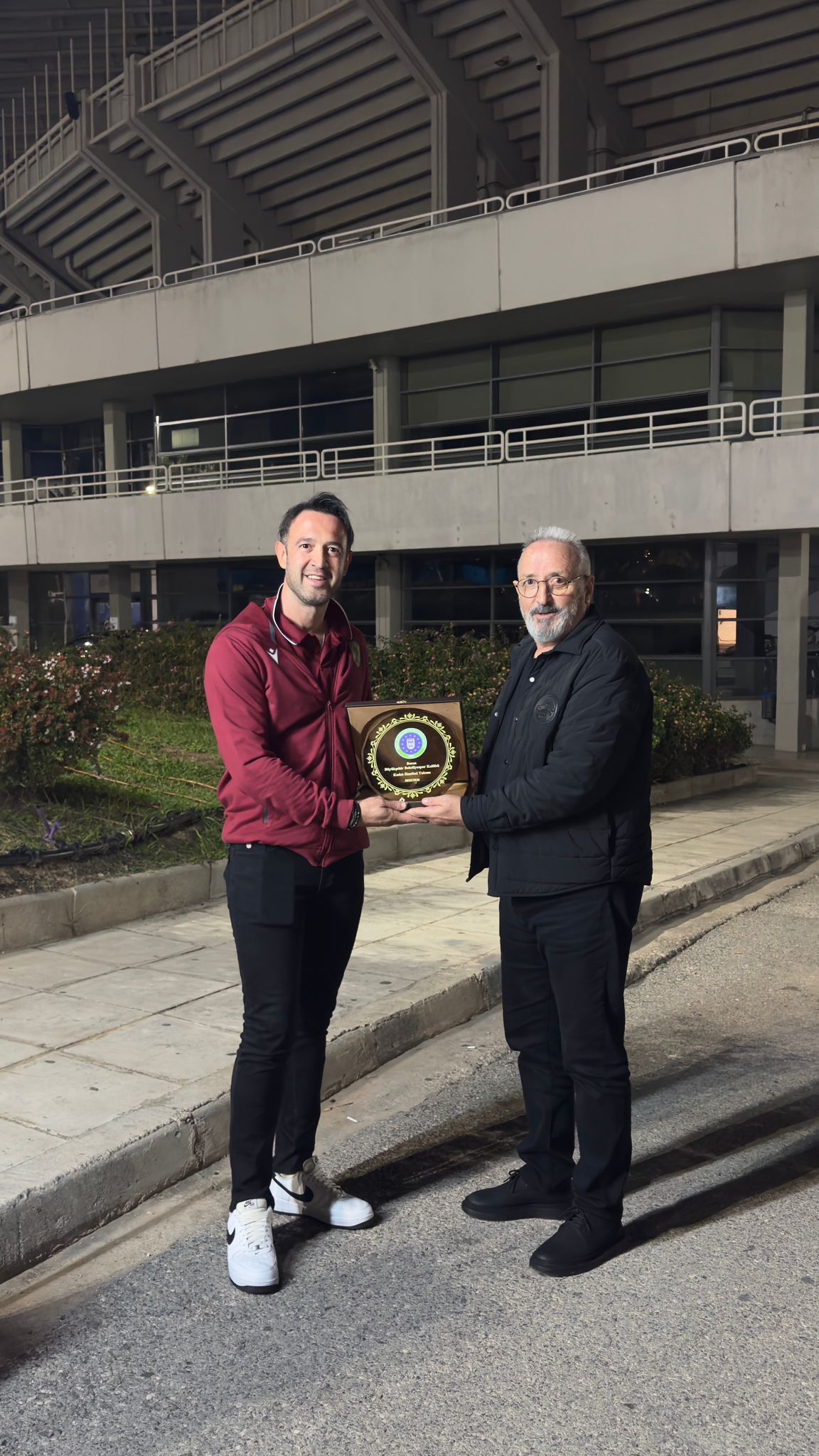 AEK Atina Hentbol Kulübü Başkanı, Bursa Büyükşehir Belediyespor Başkanı Muhammet Aydın'a günün anısı için plaket hediye etti.