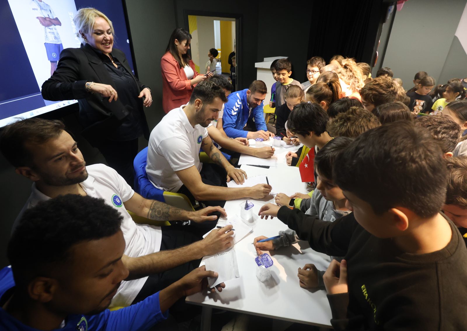 Öğrencilere deneyimlerini aktaran Bursa Büyükşehir Belediyesporlu oyuncular, seminer sonunda ise öğrencilerin yoğun ilgisiyle karşılaşırken, öğrenciler adete imza alma yarışına girdiler.
