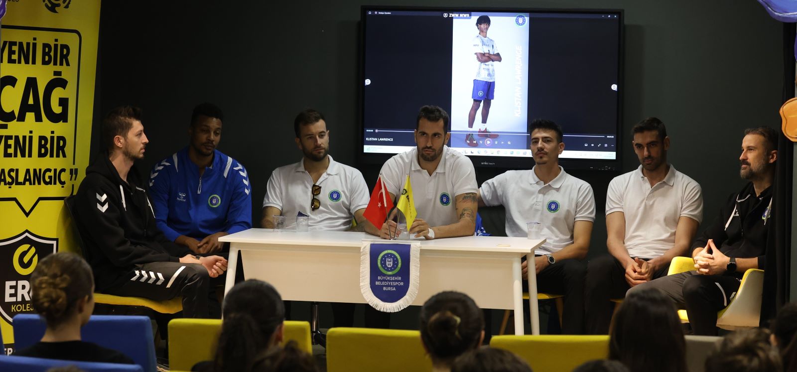 SMS Grup Efeler Ligi’nde mücadele eden Bursa Büyükşehir Belediyespor’da oyuncular ve teknik ekip Era Koleji’nde öğrencilerle bir araya geldi. 20-22 Ekim’de Ankara’da gerçekleştirilecek Kupa Voley ve 25 Ekim’de start alacak lig hazırlıklarını sürdüren yeşil beyazlı oyuncular bu kez sahada değil öğrencilerin soruları karşısında terledi.