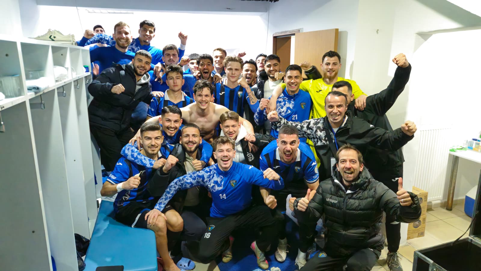 Karacabey Belediyespor soyunma odasında maç sonu büyük sevinç yaşandı.
