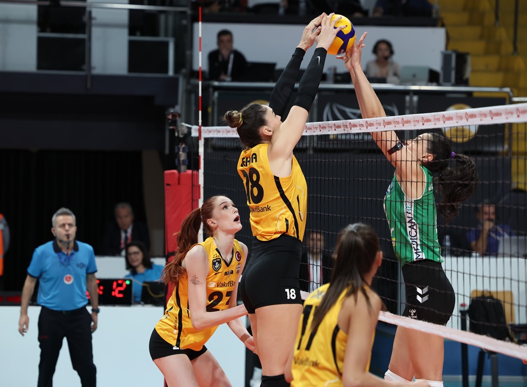 VakıfBank Spor Sarayı’nda oynanan karşılaşmada VakıfBank setleri 25-19, 25-21 ve 25-21 aldı.