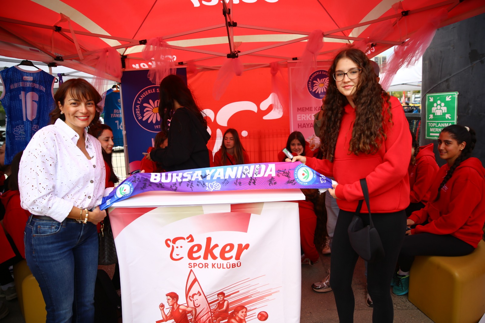 Dünya Kanser Haftası nedeniyle Eker’in düzenlediği etkinliğe katılan Nilüfer Belediyespor Eker’in kadın voleybol takımı, hem kanser haftasına dikkat çektiler, hem de imzaladıkları formaları satarak Kanser Derneği’ne katkıda bulunmuş oldular.