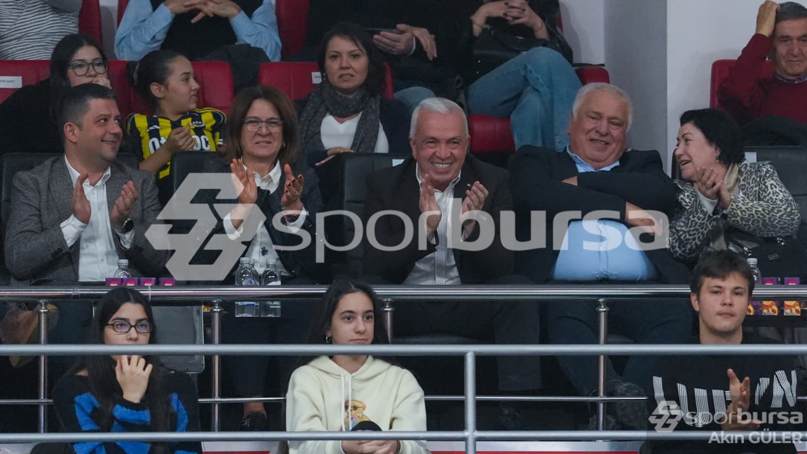 Cengiz Göllü Spor Salonu'nda oynanan karşılaşmayı Nilüfer Belediye Başkan Şadi Özdemir ile Nilüfer Belediyespor Kulübü Başkanı Muharrem Or birlikte izledi.