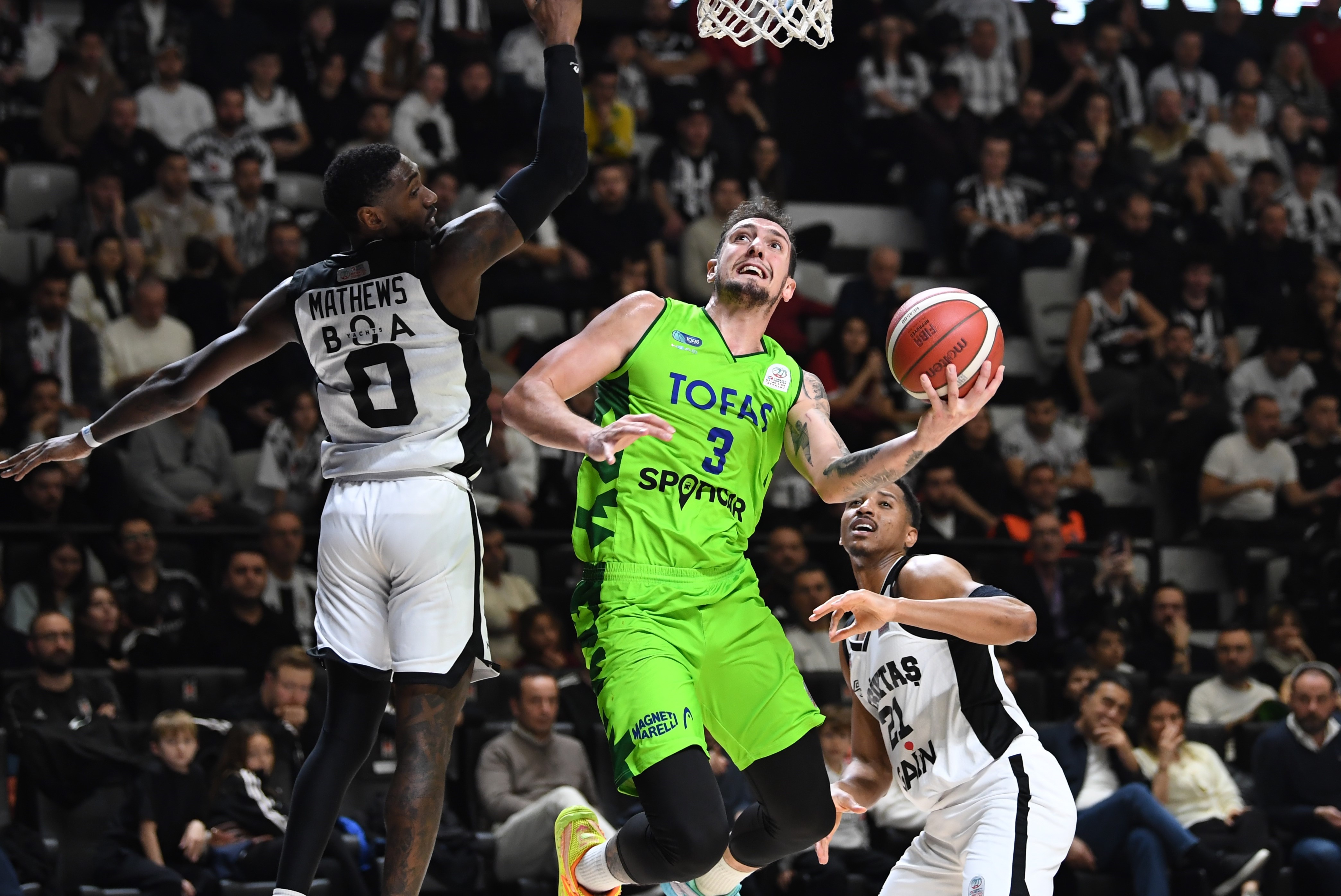 başlayan TOFAŞ, Tolga Geçim ve Furkan Korkmaz’ın basketleriyle 33. dakikada