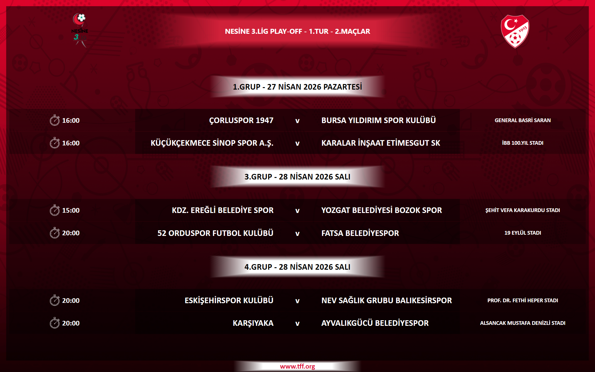 İki maç sonunda turu geçen takım, Küçükçekmece Sinopspor- Etimesgutspor (3-4) eşleşmesinin galibiyle, tarafsız sahada tek maç oynayacak. Grup finalini kazanan ekip, TFF 2. Lig’e çıkan takım belli olacak.